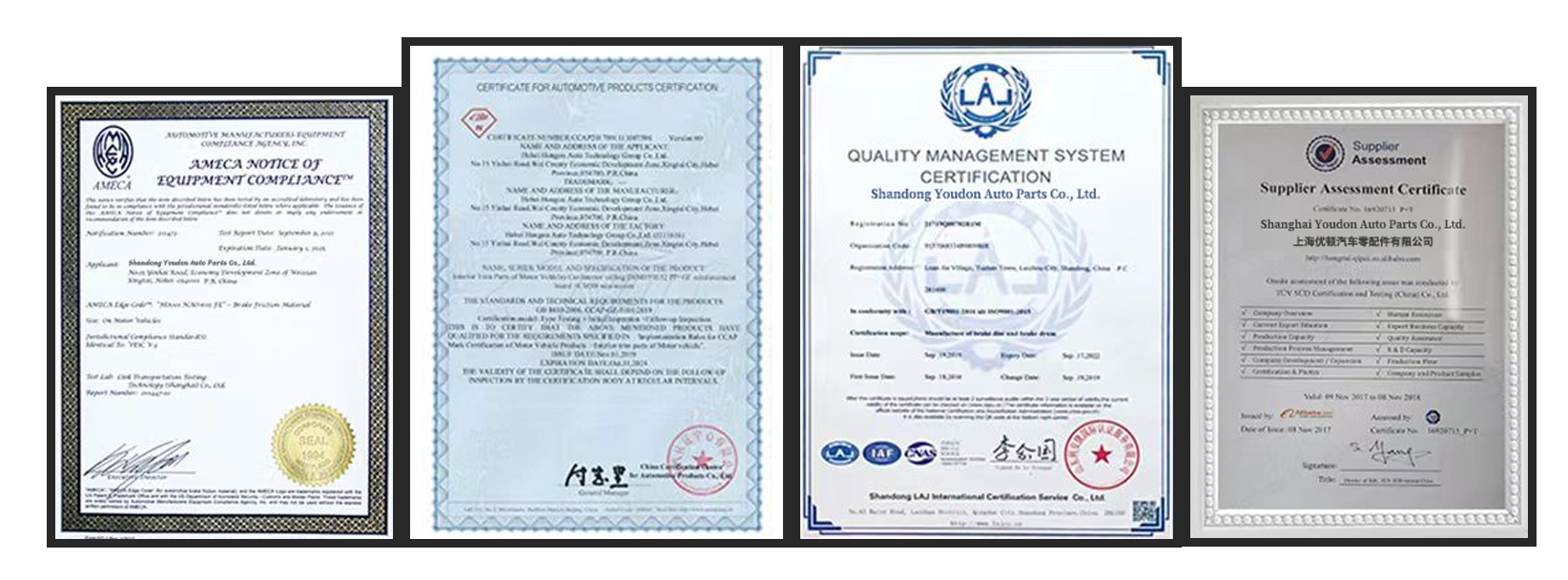 Shandong Youdun Auto Parts Co., Ltd. в настоящее время является ведущим профессиональным производителем автомобильных тормозных колодок в Китае. Компания всегда придерживается основной концепции «безопасность прежде всего», активно продвигает корпоративный дух «честности, инноваций и эффективности» и ориентируется на обслуживание китайского рынка автозапчастей. Наша компания имеет несколько производственных линий, в том числе более 2000 колодок дисковых тормозов и более 1000 барабанных колодок, с годовой производственной мощностью 5 миллионов комплектов. Кроме того, продукт прошел национальную сертификацию безопасности 3C и международную сертификацию IATF16949, что действительно представляет собой профессиональную, эффективную и интегрированную систему с полным спектром услуг. Мы также являемся профессиональным учреждением Китая, занимающимся исследованиями и разработками, производством, производством и продажей формул из чистой керамики и углеродного волокна. У нас есть ведущий в отрасли центр исследований и разработок по испытаниям на безопасность, а также техническая команда, занимающаяся фрикционными материалами. Достигните или даже превзойдите качество и превосходную производительность оригинальных вспомогательных продуктов! Мы быстро развиваемся благодаря современному оборудованию, первоклассным технологиям и строгому управлению. Наша продукция в настоящее время экспортируется в более чем 20 стран и регионов Европы. Мы завоевали хорошую репутацию на рынке и стали долгосрочным кооперативным поставщиком известных производителей в стране и за рубежом. Компания строго соблюдает стандарты продукции, строго соблюдает запрет на отсутствие асбеста и активно гарантирует послепродажное обслуживание «три гарантии», чтобы решить проблемы потребителей при покупке. Мы всегда ориентированы на рынок, ориентируемся на два основных рынка внутри страны и за рубежом и постепенно реализуем корпоративное видение «Глобального размещения тормозных колодок UIDNU» с помощью инновационных технологий и процессов.